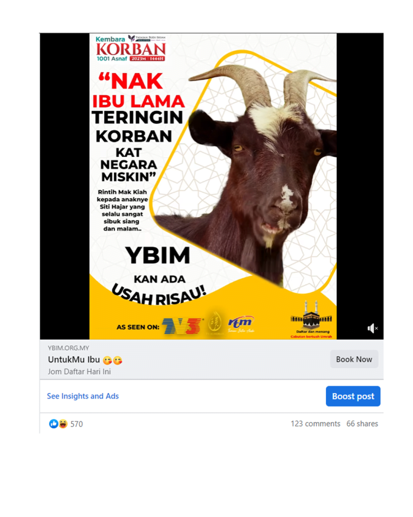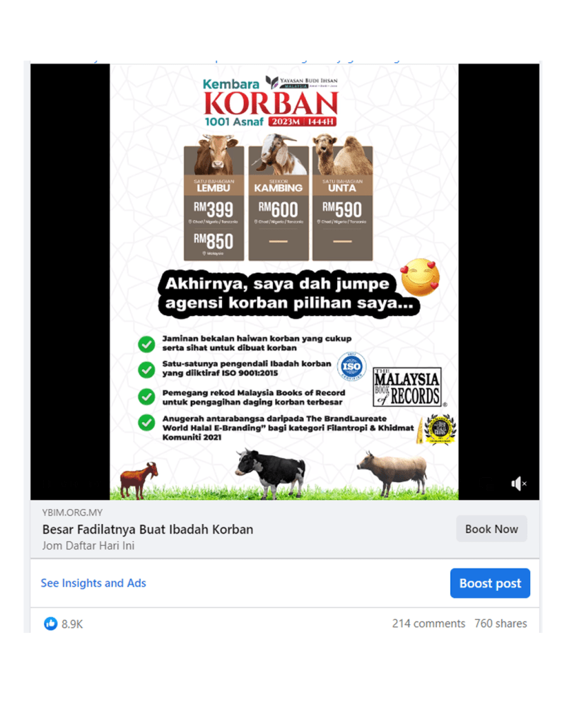Sambutan terhadap iklan sangat menggalakkan dengan jumlah engagement dan sharing pada bahan iklan. Makin ramai yang menunggu iklan apa yang akan keluar seterusnya. Kempen kali ini dapat menarik perhatian dan pendekatan kami ialah ‘Out Of Box’ kerana iklan binatang korban sebelum ini amat membosankan.