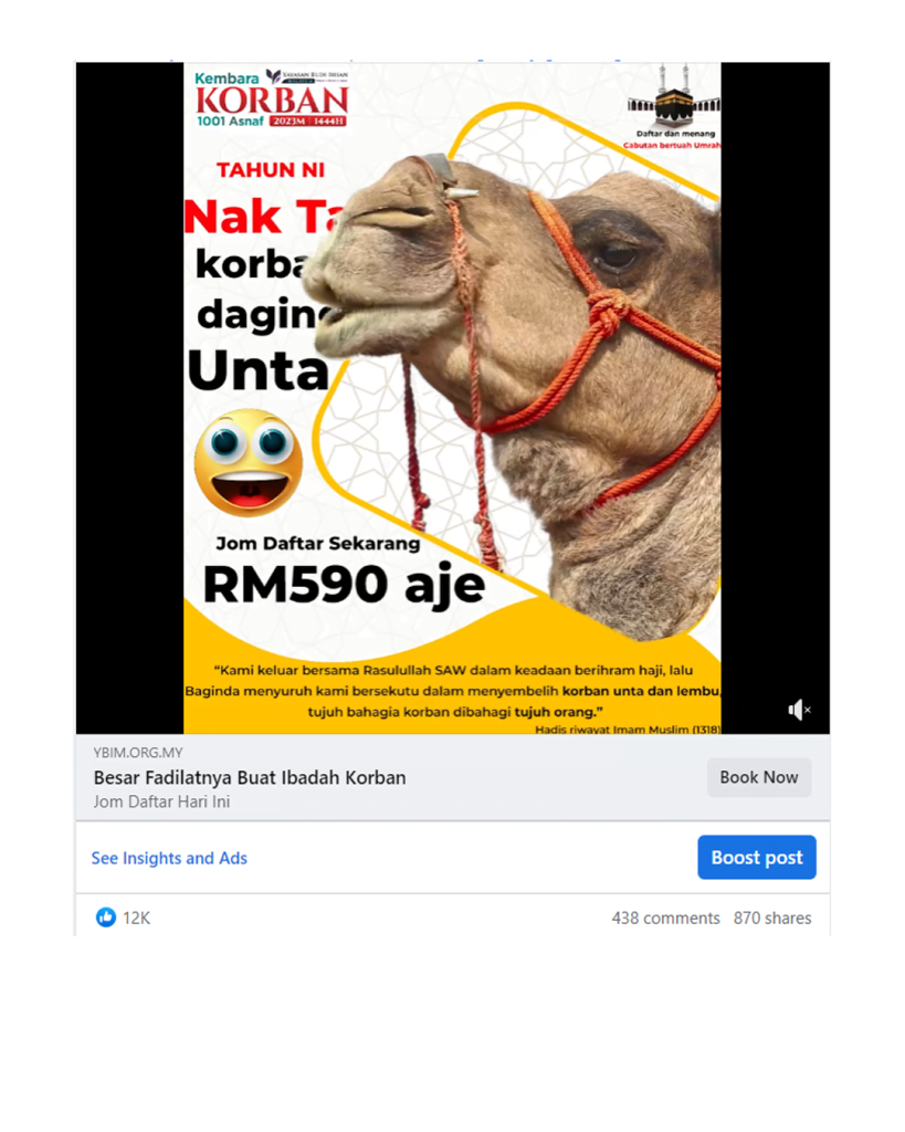 Kempen dijalankan sempena Hari Raya Aidiladha untuk dapatkan sebanyak mungkin pembelian melalui Online. Kempen yang dijalankan menggunakan platform Facebook ads dan Google ads.